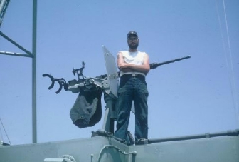 BM3 Chuck Lewis guarding one of our 20 MM Guns A Bearded BM3 Chuck Lewis