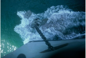 Deck view of our anchor in the water USCG WPB Point Kennedy bringing back SB #1