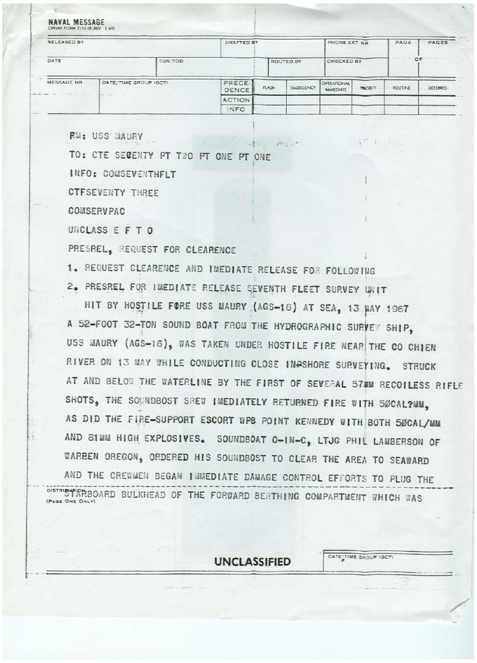 RADIO MESSAGE FROM THE MAURY TO CTE SECENTY PT TWO PT ONE PT ONE